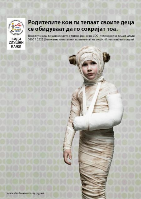 Со намера да ги охрабриме децата, родителите, соседите, најблиските, да не молчат за насилството и истото го пријавуваат, започнуваме со кампањата „Види, слушни, кажи”. Воедно, намерата е да влијаеме и на создавање поодговорно родителство и да ја подигнеме свеста околу потребата за поддршка и помош на децата, затоа мотото на кампањата е „Родителите кои ги тепаат своите деца сакаат да го сокријат тоа.”