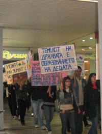 “Jemi këtu që të apelojmë përfshirjen të gjithëve në arsim, pa marrë parasysh përkatësinë e tyre fetare, etnike, racore dhe moshën”, tha Mide Nexhipi, përfaqësuese e organizatave joqeveritare nga Kërçova, që bashkë me gjashtë fëmijë kishin ardhur t’i bashkëngjiten marshit “Arsim për të gjithë”. Në Maqedoni janë rreth 18 e 500 fëmijë, të moshës shkollore që gjenden jashtë procesit arsimor si dhe 20 mijë të rritur që nuk kanë kryer shkollim. Zmijanac, drejtorit ekzekutiv i “Megjashit”, thotë se rreth dy mijë fëmijë të moshës shkollore, çdo ditë bredhin rrugëve dhe për pasojë bëhen viktimë e prostitucionit, lypjes dhe devijimet të shumta shoqërore. “Vetë ministrat e përparshëm të Arsimit dhe të Punës dhe Politikës Sociale kanë raportuar se 5 për qind e fëmijëve nuk shkojnë në shkollë”, pohon ai, për të shtuar se në bazë të përllogaritjeve të bëra i bie që mbi 18 mijë e 500 fëmijë të moshës prej 6 deri në 18 vjet nuk janë të përfshirë në procesin mësimor. “Megjasi” kërkon që të gjithë fëmijët të kyçen në procesin edukativ - arsimor, të ritet buxheti i arsimit, të shtohen paralelet dhe të punësohen më shumë arsimtarë si të sigurohet ushqimi dhe librat falas për fëmijët që vijnë nga familje me status të rrezikuar social. “Informacionet tona flasin se fëmijët që ndodhen jashtë procesit, sepse prindërit e tyre nuk i dërgojnë në shkollë për shkaqe ekzistenciale financiare”, thotë Zmijanac.