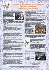 Presentation of the Alternative reports for the situation with the children’s rights in the Republic of Macedonia prepared by Macedonian National Alliance for Children’s Rights Research of the Children's Embassy Megjashi on "Perception of children about their rights, discrimination and violence against children" The fight against pedophilia, incest and sexual abuse of children continues