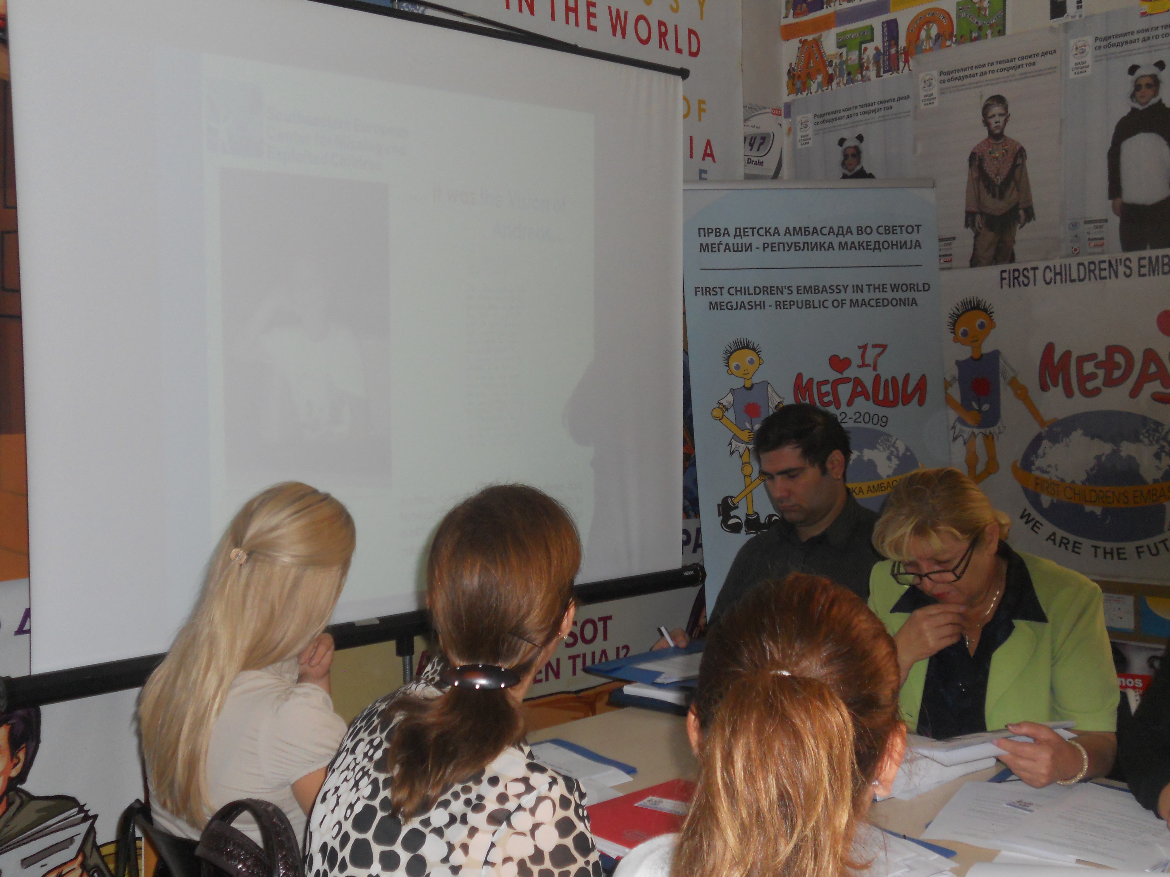 The meeting was organised at the initiative of the Greek non-governmental organisation “The Smile of the Child” which due to the expansion of activities in the Republic of Macedonia contacted the First Children’s Embassy in the World Megjashi with a suggestion of a possible collaboration in order to achieve this goal and to ensure our assistance in organising this meeting and inviting participants. The Children’s Embassy Megjashi and The Smile of the Child (more information at http://www.hamogelo.gr) are members of the Child Helpline International (an international network of SOS helplines, more information at http://www.childhelplineinternational.org).