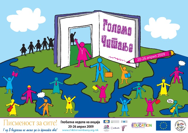 За време на еднонеделната кампања која траеше од 20 до 26 април 2009 година беа организирани неколку настани. На 22 април во училиштата низ целиот свет се одржа ГОЛЕМОТО ЧИТАЊЕ, кога децата посветија еден училишен час на читање на приказни и дискутираа за значајноста на образованието. Главниот настан на ГОЛЕМОТО ЧИТАЊЕ се одржа на 22 април на Градскиот плоштад во Скопје и на јавни локации во останатите општини во Македонија.