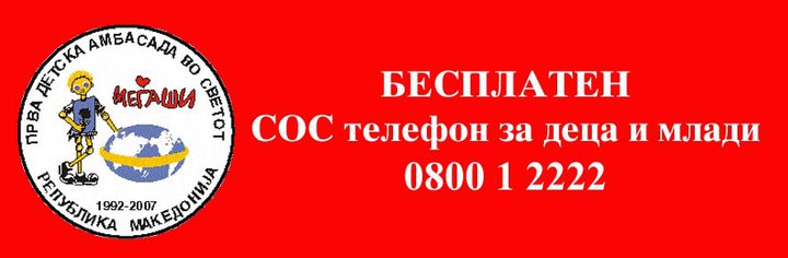 СОС телефонот за деца и млади 0800 1 2222 (бесплатна линија)