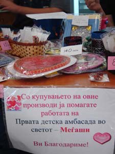 In order to raise funds in support to our program activities, we organized and also took part at the following events:  the Hand-made Items - from 01st-10th of March, the Children’s Embassy, Megjashi, had selling part at the Ramstor mall, and it was part of the fair for handmade items. During these 10 days we collected 10.960,00 denars. The lunch for the volunteers was offered by “Amati” pizza bar in the mall Ramstor.