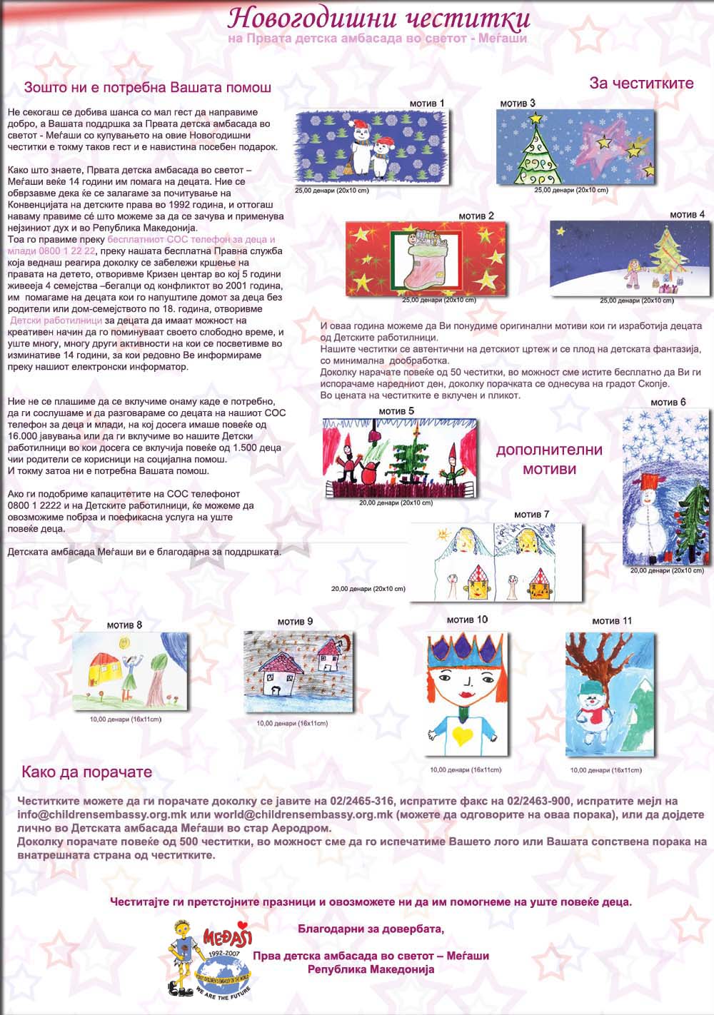 Не секогаш се добива шанса со мал гест да направиме добро, а Вашата поддршка за Првата детска амбасада во светот - Меѓаши со купувањето на овие Новогодишни честитки е токму таков гест и е навистина посебен подарок.